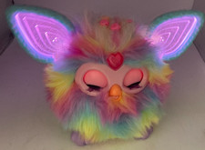 • Furby Boom interactive electronic toy by Hasbro with rainbow multicolour fur. • Model: Furby Boom. • Character: Furby. • Features: Light-up LED ears, interactive electronic toy. • Colour: Rainbow / multicolour.
