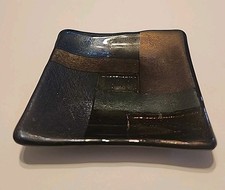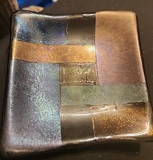 Fused Dichroic Art Glass Iridescent Accent Tray Decor Art Glass Signed