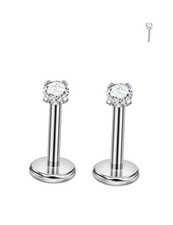 G23 Titanium Threadless Nose Studs 2.0mm, 18 Gauge 6mm Silver additional preview