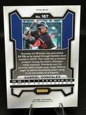 The product is a 2024 Panini Prizm Baseball Gold Shimmer Prizm 1/7 FOTL trading card featuring Major League Baseball player Gabriel Gonzalez from the Minnesota Twins. This limited edition card is part of the 2024 Panini Prizm set, made of card stock, and has a serial number of 1/7. The card is an original release by Panini in English language, showcasing a parallel gold shimmer prizm variety. It is a collectible sports trading card that is sure to be a coveted item for baseball fans and card collectors alike.