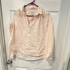 Gap Women's Light Pink Dobby Cotton Collared Long Sleeve Button Blouse Size M
