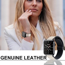 Includes one genuine leather magnetic Apple Watch band (iWatch not included). Compatible with all Apple Watch models including Series 1-11 and SE. Adjustable magnetic buckle for a secure fit on 5.3"-7.8" wrists.