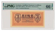 GERMANY banknote 1 Reichsmark 1942. PMG MS 66 EPQ. Gem Uncirculated.