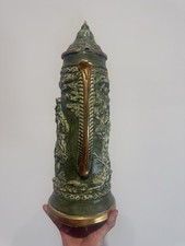 Germany Green Ceramic Lidded Stein with Relief Decoration Breweriana