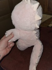 The Getahug Brown Jointed Teddy Bear is a 12" plush stuffed animal that comes dressed in pink dinosaur clothing. Made of polyester and plush material, this beige colored bear is perfect for all occasions and is machine washable for easy care. With its original design and animal theme, this teddy bear is sure to delight any animal lover or make a unique gift for a special occasion. So cute