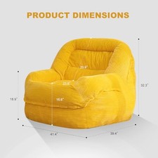 Giant Bean Bag Chair with Armrests - Oversized Cozy Seating for Corn Yellow