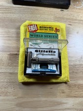 Hello, all. I have decided to put up some of my “collector” items. My razor collection is overflowing and I am beginning to dispose of items that I will not use and are simply collectible. This is a Fatboy 1.95… year is a G2… This razor is attached to the Gillette Sports Encyclopedia. It has not been opened. It appears to have never been opened. As far as the razor, it seems to be NOS… I have never used this razor and it appears to be brand new. I am unsure that someone would buy this razor and use it but I found this item to be collectible and put it in one of my cases. At this point, I simply have too many items and I am letting things go. If you have any questions, feel free to reach out. Thank you!