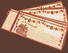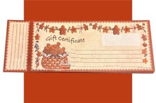 These are blank gift certificates with a cute gingerbread theme, perfect for all coffee shops, restaurants, gift shops, boutiques, craft sellers and more. Made in the USA, each is 11” x 4”. 50 gift certificates. Buy more, save more!