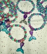 11 pieces mermaid themed party favors beaded bracelets. Costume jewelry. Durable acrylic material. Comfortable stretch to fit most. Multi colors as the photos show