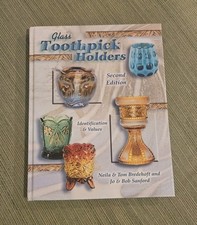"Glass Toothpick Holders: Identification and Values Second Edition" by Neila & Tom Bredehoft and Jo & Bob Sanford is the definitive guide, a must-have for serious collectors and new enthusiasts. The hardcover book features 270 pages of full color, beautifully illustrated images and loads of information on glass toothpick holders.