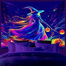 Glow-in-the-Dark Halloween Tapestry - UV Reactive Black Light Wall Hanging