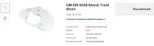 GM 25918338 Replacement Splash Shield, Dust, Backing, Front Right Passenger Side