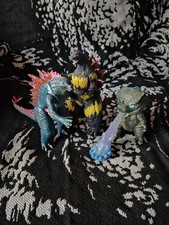 this bulk are some projects that I could never find time to finish. The tail on the burning Godzilla and packaging are included just not in photos. The figures are playmates 1995 Godzilla and 2023 Godzilla aswell as a funko pop glow in the dark 2021 Godzilla. With the funko I tried touching up the glow paint on the dorsal plates since I found it a bit lacking. On the Godzilla evolved i tried giving it a slightly pinker look and add glittern, I just never finished covering it with glitter. Last the 1995 burning Godzilla I tried giving it a stronger stylized flame look since the original release was laughably weak looking. I wish I could've finish the job but my shortcoming is another customizer's gain. Buy with confidence.