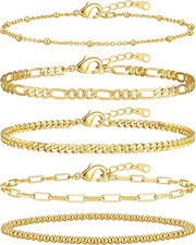 Gold Bracelets for Women, 14K Gold Plated Stackable Bracelet Stack Set Adjustabl