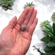 Golden Rutilated Quartz Marble Sphere (#17) Listing is for one marble A golden rutilated quartz marble sphere glistens with golden threads, each rutile inclusion capturing light in a mesmerizing display. Metaphysically, it is said to amplify energy, enhance intuition, and promote spiritual growth, offering clarity and a deeper connection to one's inner self. Approximate Measurements 10.05 grams 0.74" diameter 2.50" circumference Please note natural stones are one of a kind and tend to have imperfections. Certian lighting may alter the crystal's color display in photos. Smoke Free | Pet Free Environment