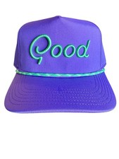 • Style: Performance Rope Hat / Snapback. Look the part on the course with this official Good Good Golf "Purple Pass" rope hat. • Model: Purple Pass Rope Hat. • Color: Vibrant Purple with Neon Green "Good" Script & Accent Rope.