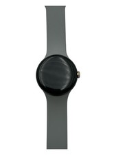 Chalk active band. 41mm round AMOLED display with always-on option. Polished silver stainless steel case.
