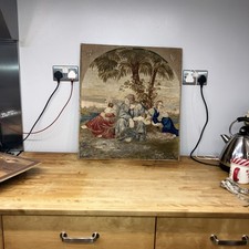 Gorgeous biblical Antique French Tapestry Wall Hanging Needlework needs frame