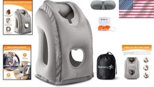 Gray Inflatable Neck Pillow for Airplanes and Office Napping