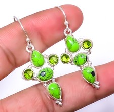 Green Turquoise & Peridot 925 Sterling Silver Earring 1.76" E911-1