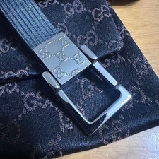 **Title:** Gucci Keychain Key Ring GG Pattern Leather Silver Black **Description:** This item is unused and in excellent condition. However, the outer box has some minor scratches.