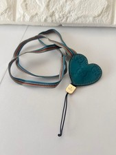 **Title:** GUCCI Turquoise Heart-Shaped Leather Keyholder Strap **Description:** This is a turquoise heart-shaped leather keyholder with a striped strap. The strap measures approximately 84 cm. This item was purchased from a certified vintage marketplace. It has been authenticated and verified by a licensed appraiser. Immediate purchase is welcome! Please feel free to contact me with any questions. I will consider price negotiations only for those who follow my store. However, I may not be able to meet all requests. I plan to list various other items, so please check them out. Thank you for viewing! - Color: Turquoise - Design: Heart-shaped - Material: Leather - Strap: Striped design Thank you!