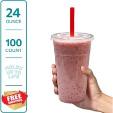 GUSTO 24 oz Clear Cups 100 Count Flat Lids Straws Cold Drinks