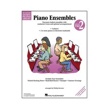 Four-part student ensembles arranged for two or more pianos. These ensembles, arranged by Phillip Keveren, feature student favorites from Book 2 of the Hal Leonard Student Piano Library. Each book contains four selections which include: · Four student parts · Conductor's score with optional teacher accompaniment · Performance configurations for 2 or more pianos · Suggested instrumentation for electronic keyboards. Fully orchestrated CD and GM accompaniment disks are available separately. Four ensembles: Painted Rocking Horse · Basketball Bounce · Stompin' · Summer Evenings.