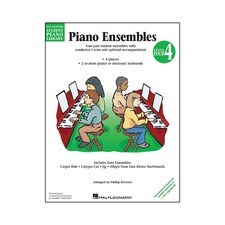 Four-part student ensembles arranged for two or more pianos. These ensembles, arranged by Phillip Keveren, feature student favorites from Book 4 of the Hal Leonard Student Piano Library. Each book contains four selections which include: · Four student parts · Conductor's score with optional teacher accompaniment · Performance configurations for 2 or more pianos · Suggested instrumentation for electronic keyboards. Fully orchestrated CD and GM accompaniment disks are available separately. Four ensembles: Carpet Ride · Calypso Cat · Jig · Allegro from Eine Kleine Nachtmusik.