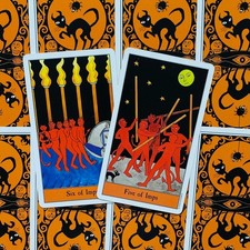 🇺🇸 USA Buyers: Orders ship quickly from the EU via DDP (Delivery Duties Paid) — duties/tariffs/customs fees are covered, so there are no extra charges upon delivery to your door.A black cat with glowing eyes leads us on our nocturnal sojourn through the 78 cards of the Major and Minor Arcana. The characters of the Major Arcana visit from the realms of horror stories and Halloween tradition. Frankenstein and his bride 'bring to life' the Emperor and the Empress cards. The Minor Arcana suits are Pumpkins, Imps, Ghosts, and Bats, each with a special significance. Included: 78 cards. Card size: 7 x 12 cm (2.75" x 4.75"). Weight of the deck: 254 g. (0.56 lbs) (approx). Paper playing cards. New, sealed. Made in USA. 100% authentic, original US Games Systems product. A black cat with glowing ey.