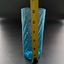 Hand Blown Blue Bubble Glass Tumbler Swirl Optic 6" Tall Drinkware Art Glass