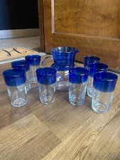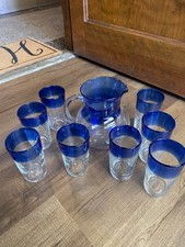 Hand Blown Cobalt Blue Mexican Style Glass Pitcher & Tumbler Set