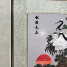 Hand Embroidery Silk Asian Cranes On Frame