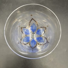 Hand Painted Lotus Floral Blue and Gold Tulip Wine Goblet Crystal Stemmed Set 4
