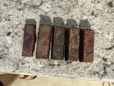 Lot of 5 hand poured copper ingots, these are listed cheaper than I have seen other listings due to my dissatisfaction with a new mold. The four full size bars all came out just below one pound and ended up with a rough finish (bad mold) and the 5th partial bar is primarily to make up that small amount of weight, I will be replacing the mold so that subsequent bars listed will be of higher visual quality and 16oz minimum.