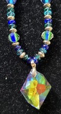 Handcrafted Glass Beaded Pendant Necklace Blue Green Multicolor Bohemian