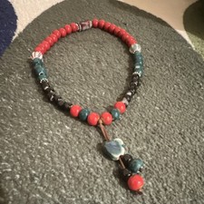 Handcrafted Multicolor Beaded Necklace with Glass Stone Asymmetrical Pendant
