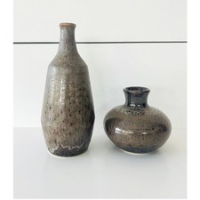 Two lovely handcrafted studio pottery vases. Displayed together for a striking presentation or choose your favorite and showcase their unique beauty. They have a shiny glaze in a beautiful neutral brown tones.