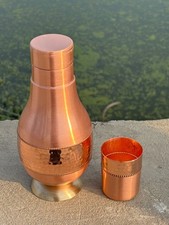 Add wellness and elegance to your daily routine with thisHandcrafted Pure Copper Water Bottle with Cup. Copper has been traditionally used in Ayurveda for its natural health benefits and ability to keep water fresh.