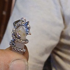 Handcrafted Quartz Point Pendant Necklace with Metal Dragon Wrap, Clear Silver