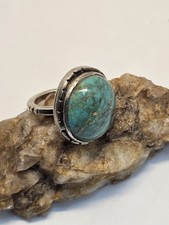 lady's silver turquoise ring Size 5 3/4 Weight 17.6 grams Hand-made silver Arizona turquoise stone
