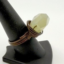 Handcrafted Wire Wrapped Green Stone Ring Artisan Style Size 8.75