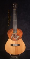 Handmade Baritone Ukulele, Solid Hawaiian Koa, Spruce & Acacia, 4 String, Turtle Soundhole, Soft-bag Bruce Wei UG19-2328. Top Material : Solid Hawaiian Koa & Spruce. Back & Sides Material : Solid Acacia.