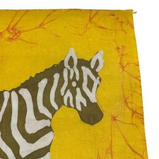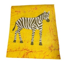Handmade Batik Zebra Textile Art Fabric Panel Yellow Wall Decor Hanging 12x14.5