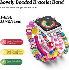 Compatible with Apple Watch 38mm, 40mm, 41mm, and 42mm models. Colorful beaded style adds a unique touch to your watch. Handmade elastic design for a comfortable fit. Durable materials ensure long-lasting wear.