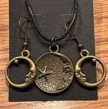 Handmade Bronze Celestial Moon earring & Necklace Set Boho With Gift Bag