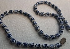 Handmade Chinese Blue And White Beaded Necklace Hand Knotted 22 Inch