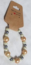 Handmade Ecru, Dark Gray, Gold Glass Pearl Bracelet