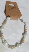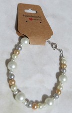 Handmade Ecru, Gold, Gray Glass Pearl Bracelet