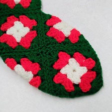 Handmade Granny Square Crochet Christmas Stocking Green Red White Holiday Decor